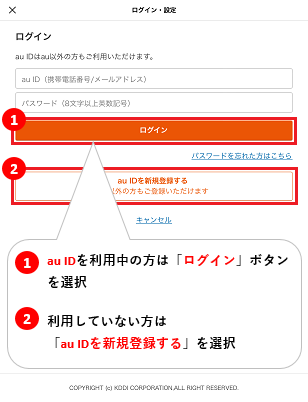 au IDとパスワード(データ通信契約番号)を入力し「ログイン」を押します。■au IDを利用していない方