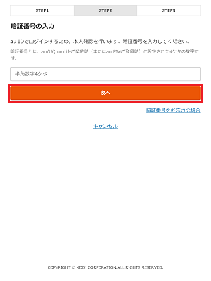 暗証番号を入力し、「次へ」を押します。